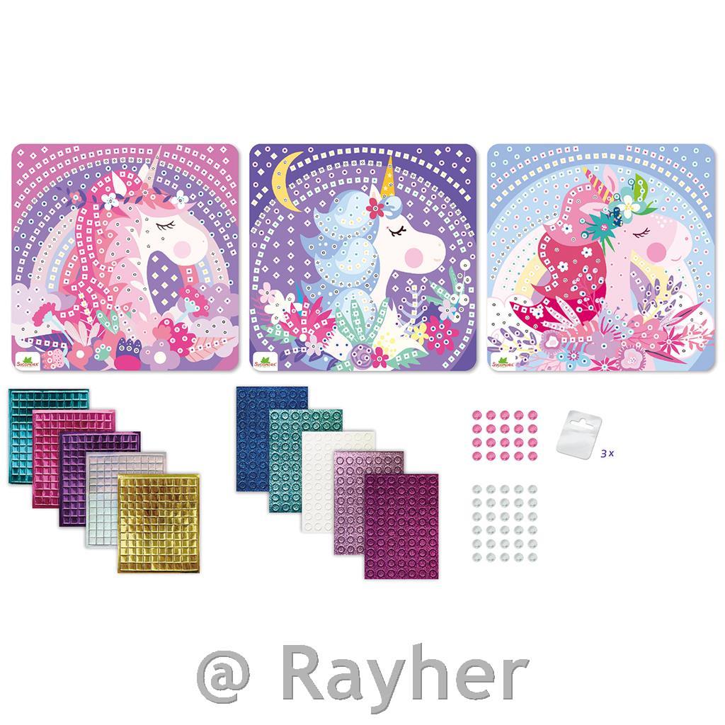 V tem setu najdete 3 natisnjene motive. Vsebina: 1000 koščkov mozaika, 3 kartonske plošče, 3 obešalni jezički in slikovna navodila. Priporočljivo za otroke nad 5 leti starosti.