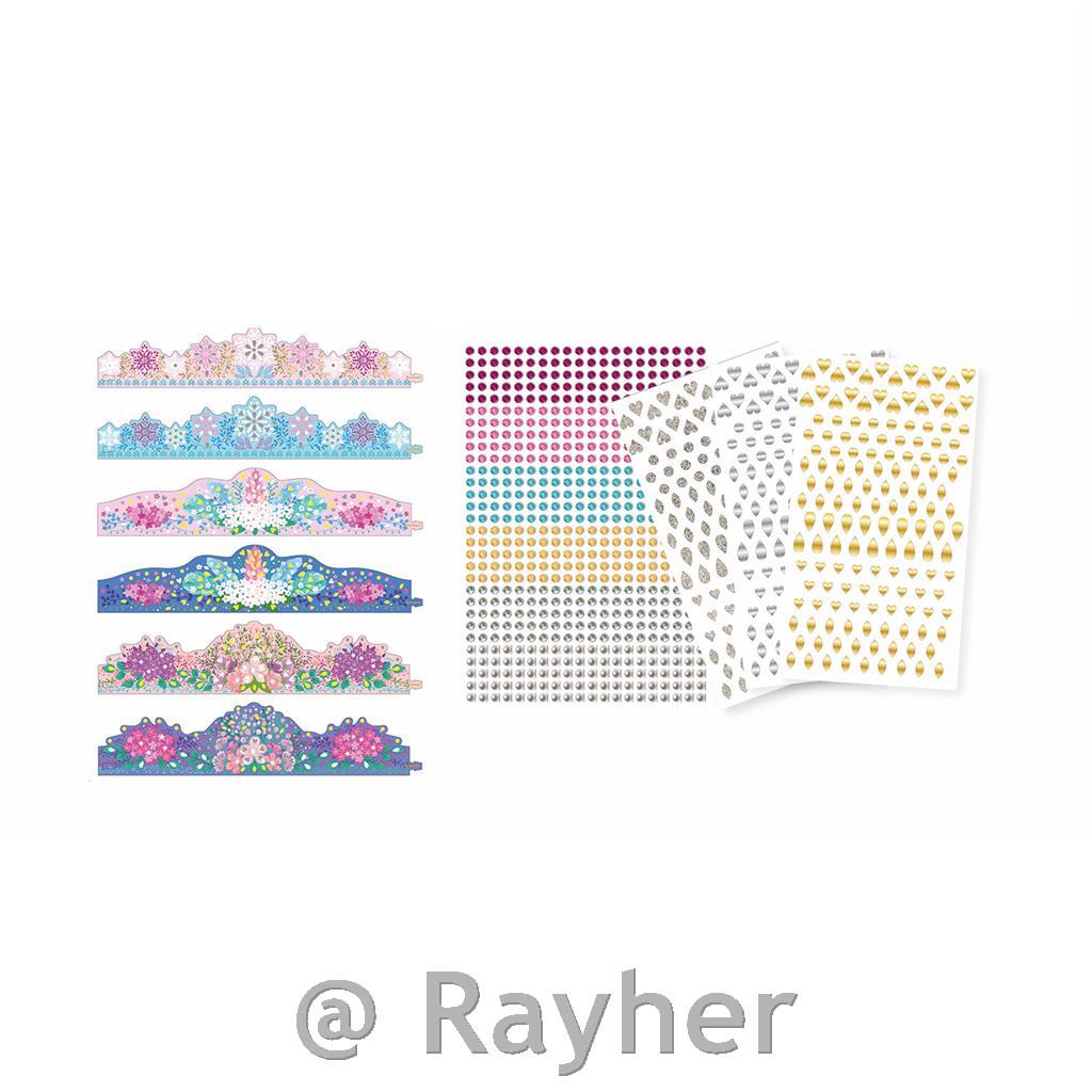 Il set contiene 6 corone da decorare con cristalli e adesivi lucidi o metallici e istruzioni illustrate.