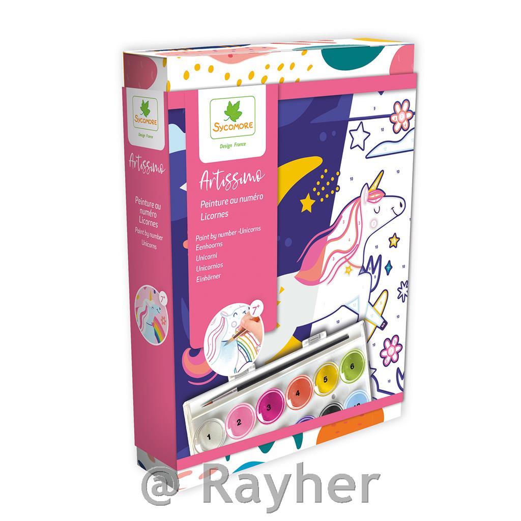 Il set include 3 tele su cartone per dipingere con i numeri, una tavolozza di 12 colori numerati, un pennello e istruzioni illustrate.