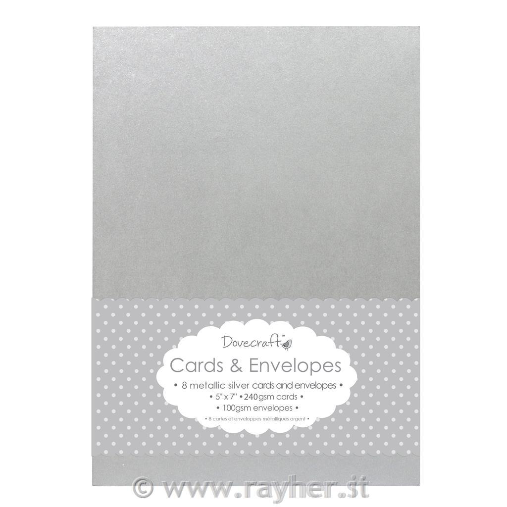 8 Silver Metallic 5x7 Cards & Envelopes