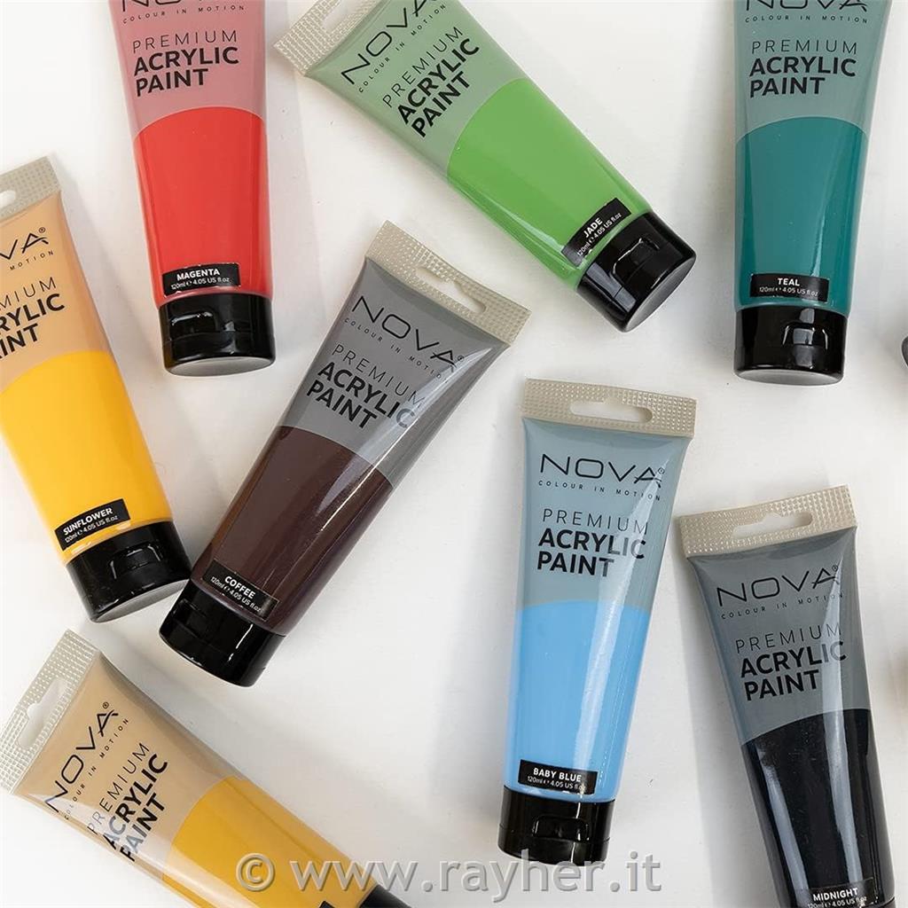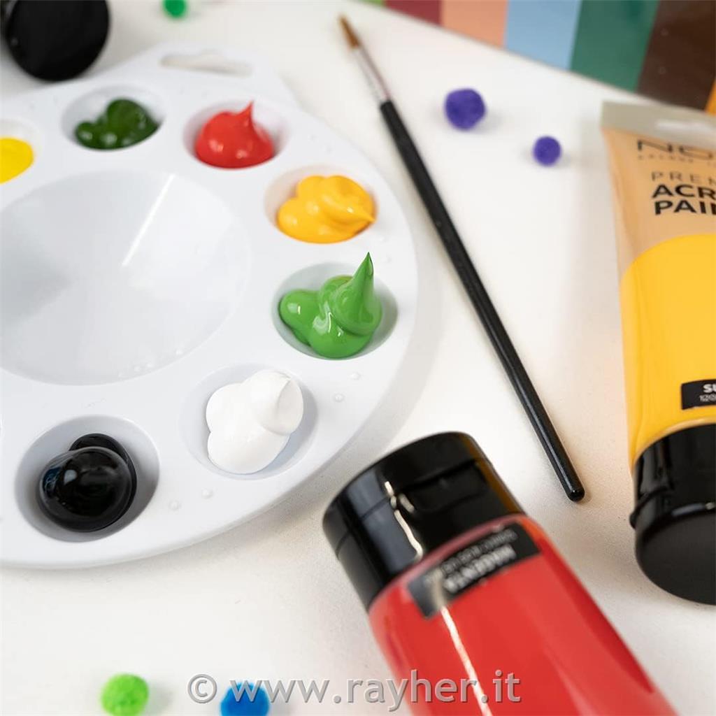 Velik komplet akrilnih barv vsebuje 14 x 120 ml tub z večjo izbiro bogatih in vabljivih barv, kot so črna, bela, rumena, zelena, modra in še mnogo drugih, ki bodo le podžgale vašo domišljijo. Tubice so popolne velikosti, zato boste imeli na voljo veliko barv za vse svoje zamisli za ustvarjanje ali naslednji večji ustvarjalni projekt.