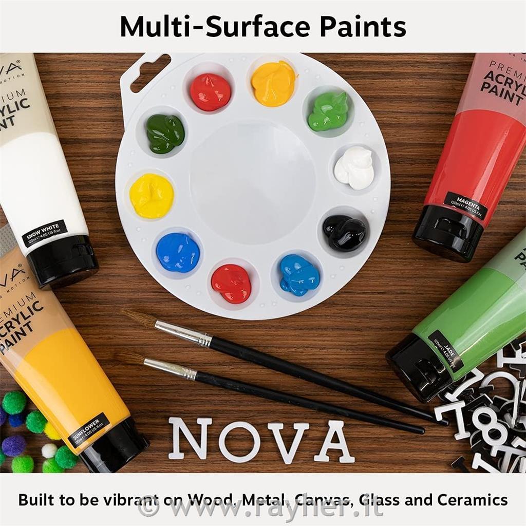Barve so varne in netoksična. Komplet je idealna izbira za uporabo na več površinah, saj je posebej zasnovan tako, da ima višji odstotek živahnosti na površinah, kot so les, kovina, platno, steklo, keramika in še veliko več.