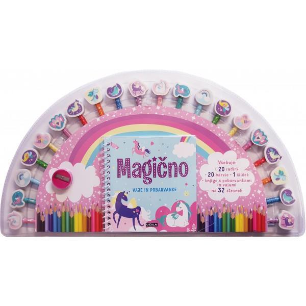 Knjiga s 4 barvicami, svinčnikom in 5 radirkami