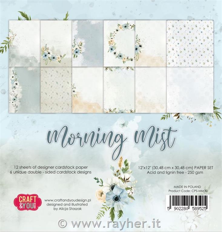 Set papirjev, 30x30cm, set 12, 250gsm, Morning Mist