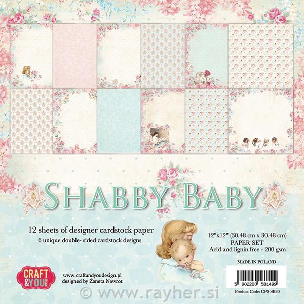 Set papirjev, 30x30cm, Shabby Baby,set 12