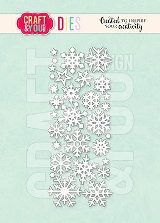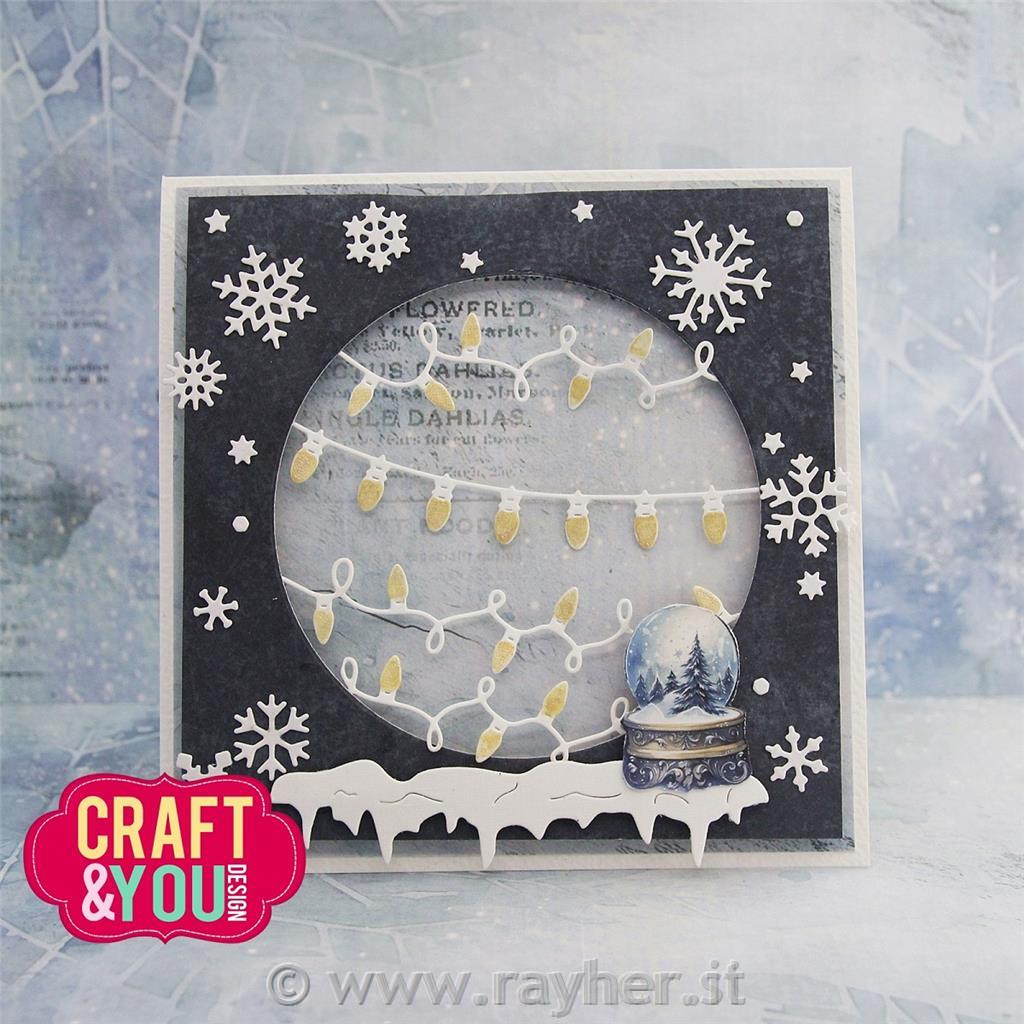 V zavoju je ena rezalna šablona, ki odreže 15 različnih snežink, zvezdice in sneg.