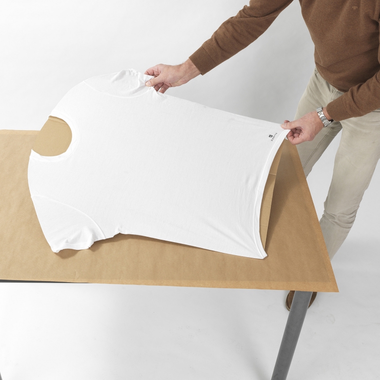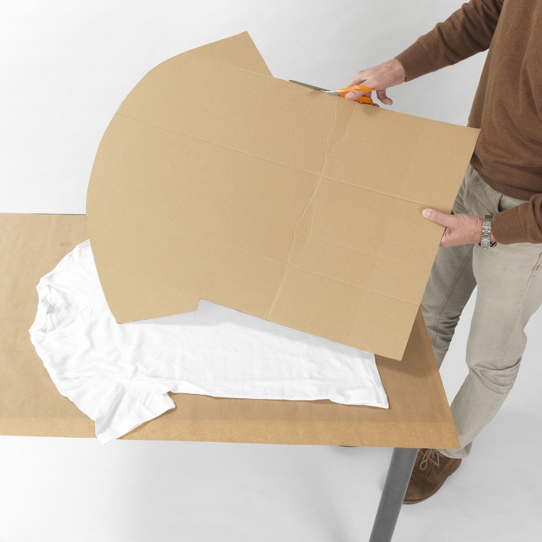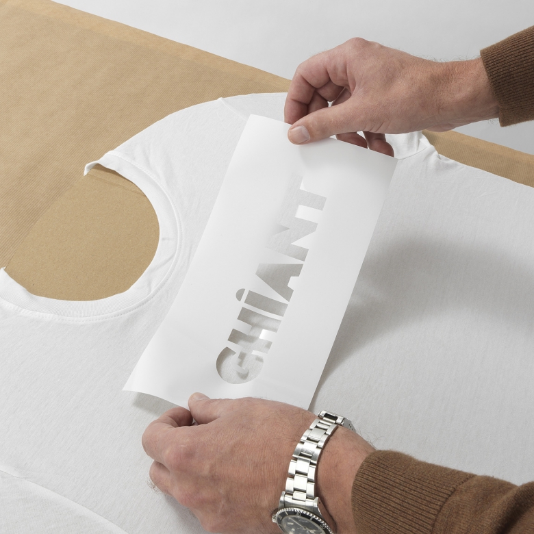 GHIANT H2O è una vernice spray per tessuti a base d'acqua. Prima dell'applicazione, si consiglia di lavare il tessuto senza aggiungere l'ammorbidente.Allunga la t-shirt sulla base di cartone.