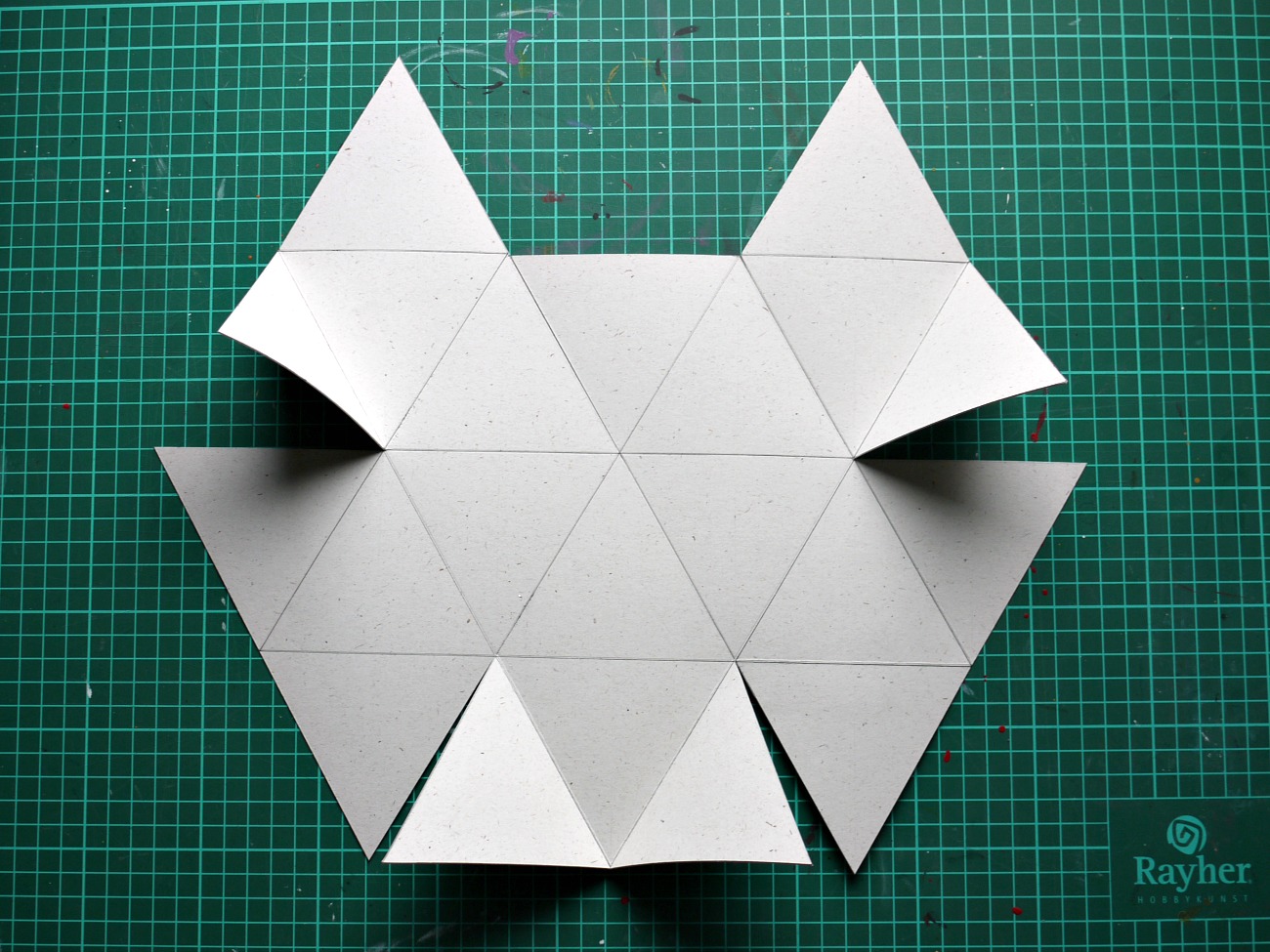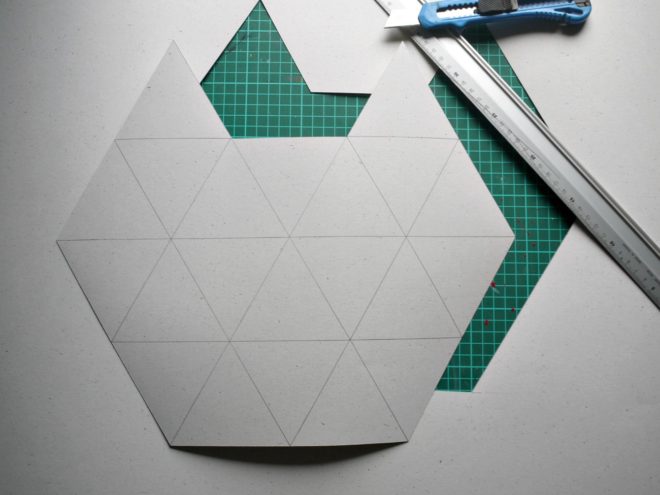 Za škatlico uporabimo fotokarton, na katerega natančno narišemo vzorec/šablono kot kaže slika. Vsi trikotniki morajo biti enakostranični.