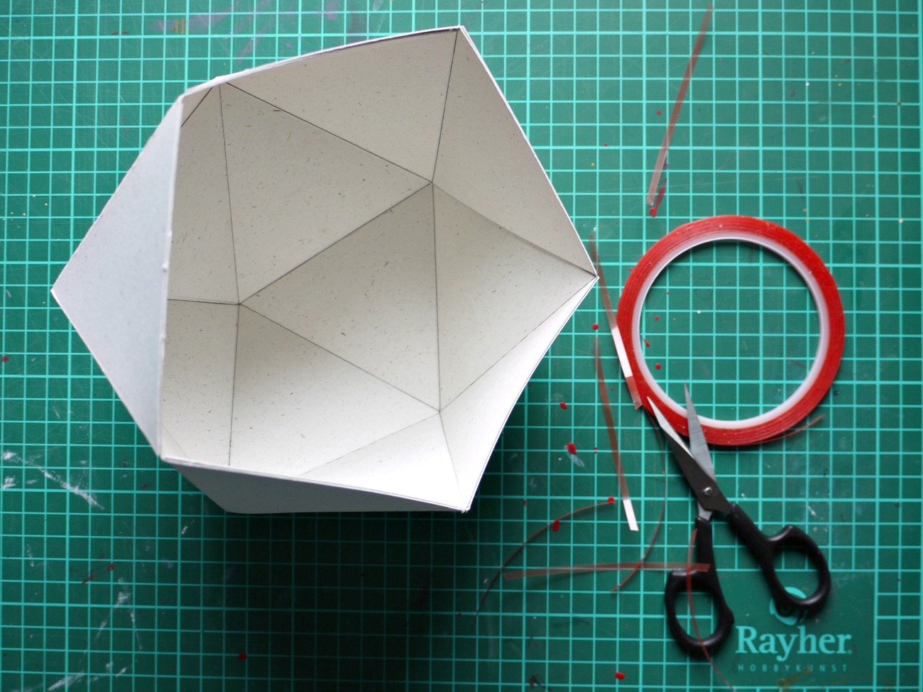 Z dvostranskim samolepilnim trakom šablono sestavimo v celoto kot kaže slika.