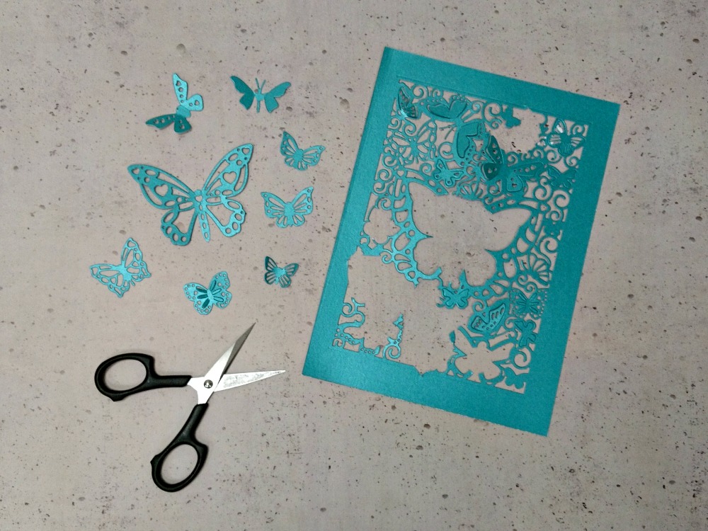Poleg celotnega izreza lahko uporabimo tudi posamezne metulje, ki jih izrežemo z ostrimi škarjicami.