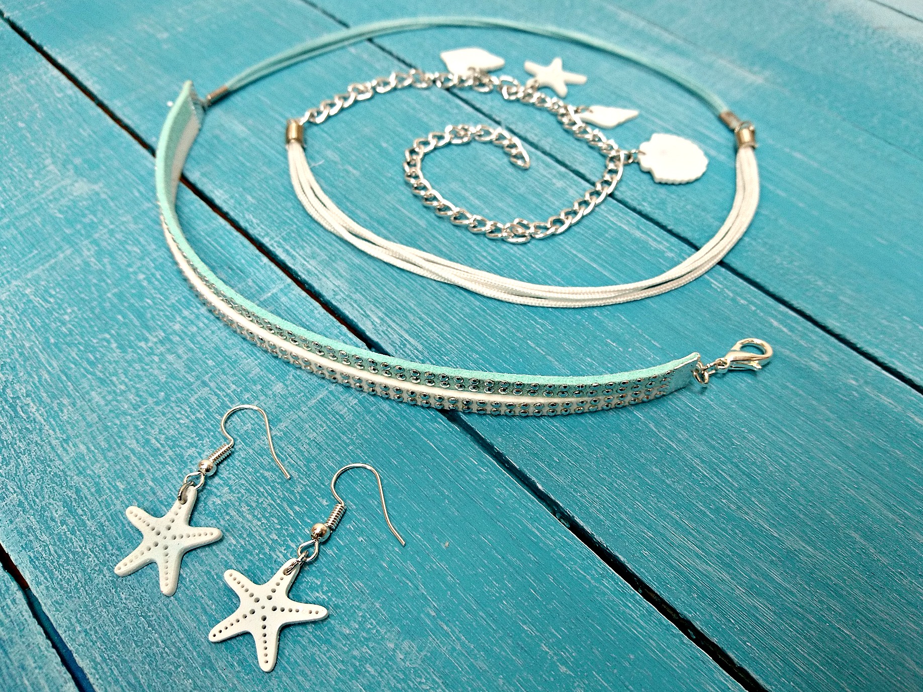 Poleg zapestnice sestavimo še enostavne viseče uhančke in poletni komplet nakita je pripravljen.