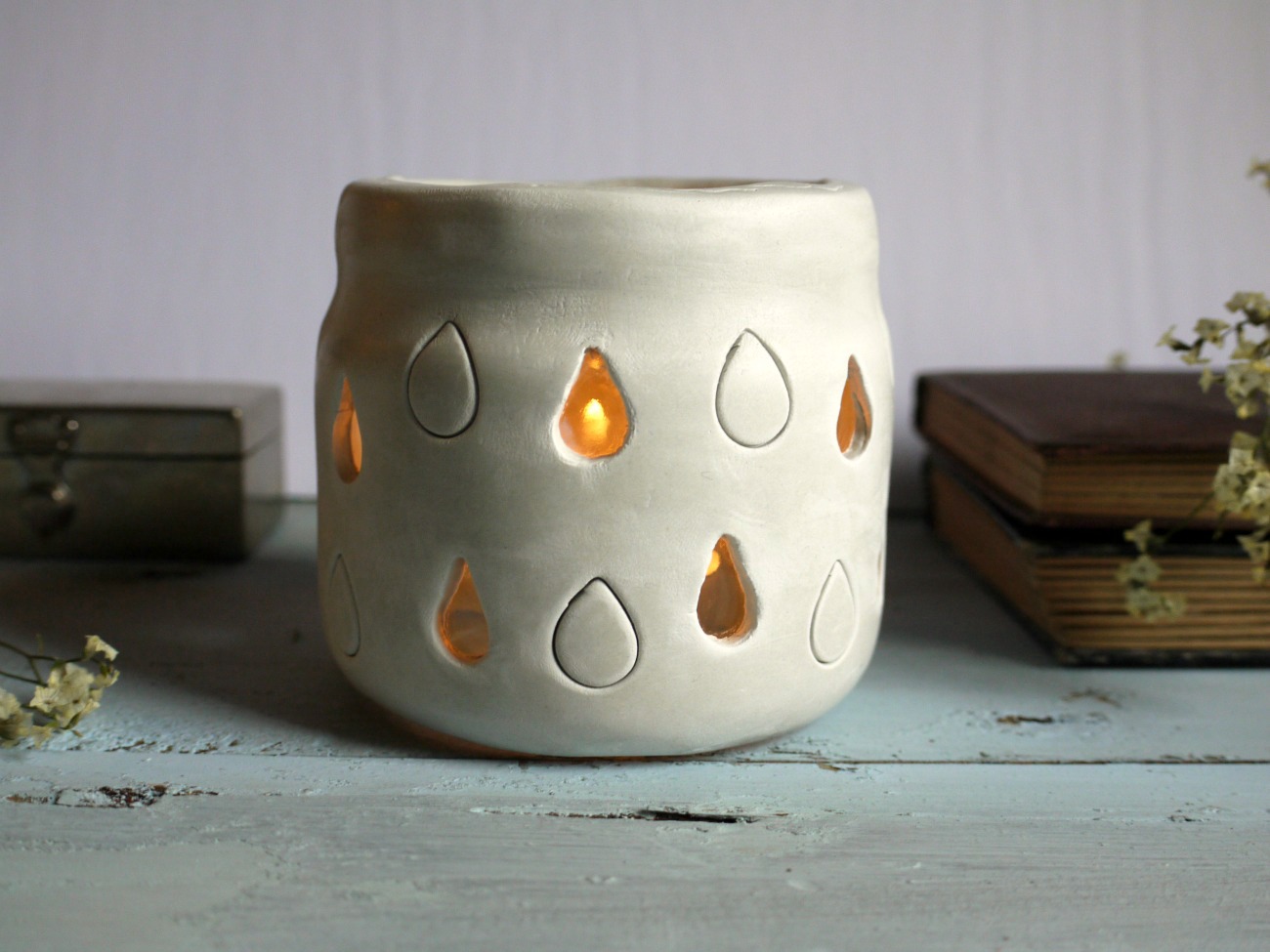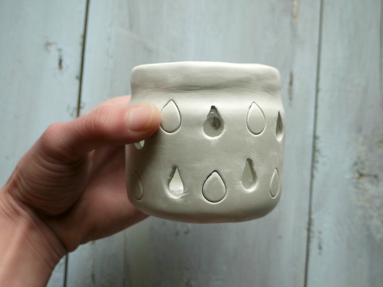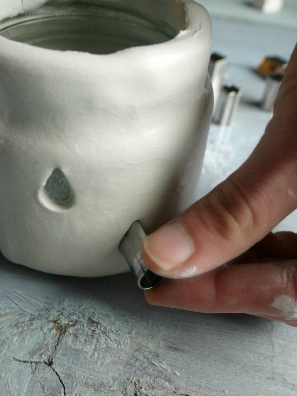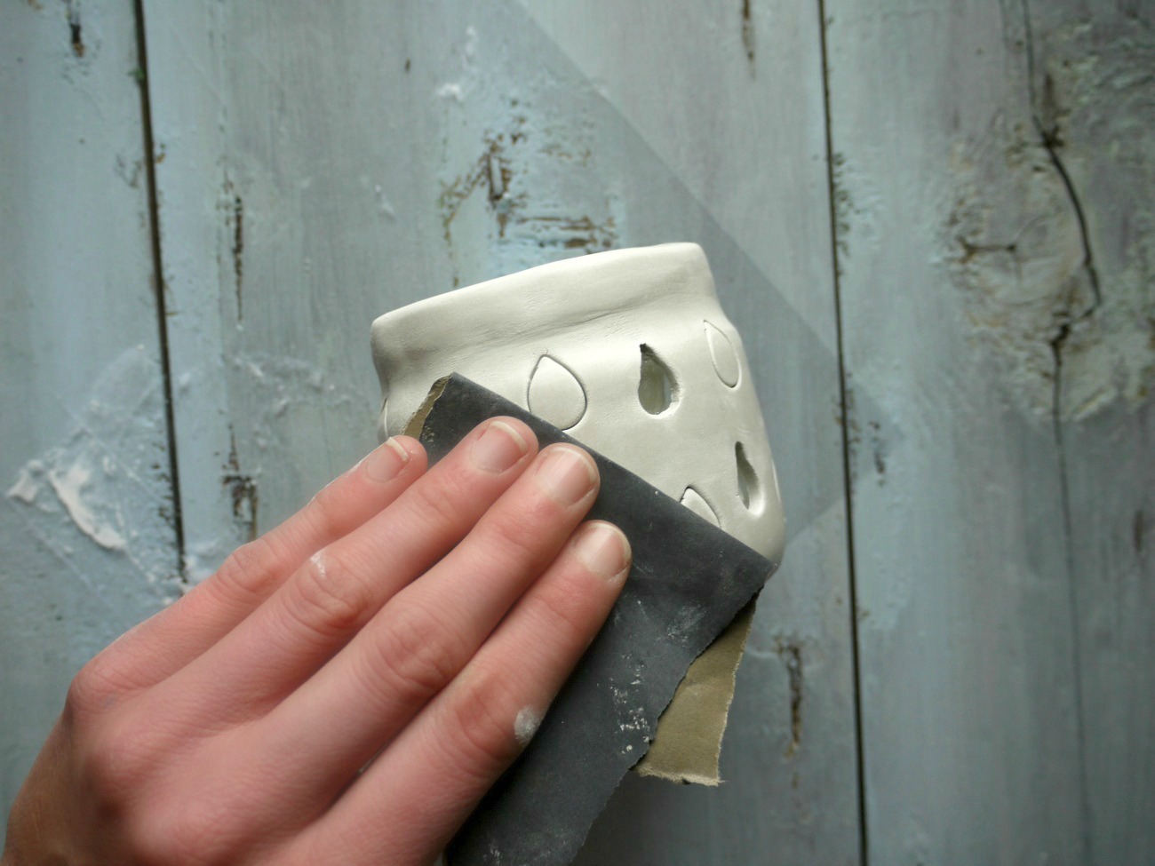 Ko se naš svečnik posuši, lahko površino zbrusimo s finim brusnim papirjem, da odstranimo morebitne prstne odtise. Odprtine v obliki kapljic očistimo z navlaženimi bombažnimi paličicami.