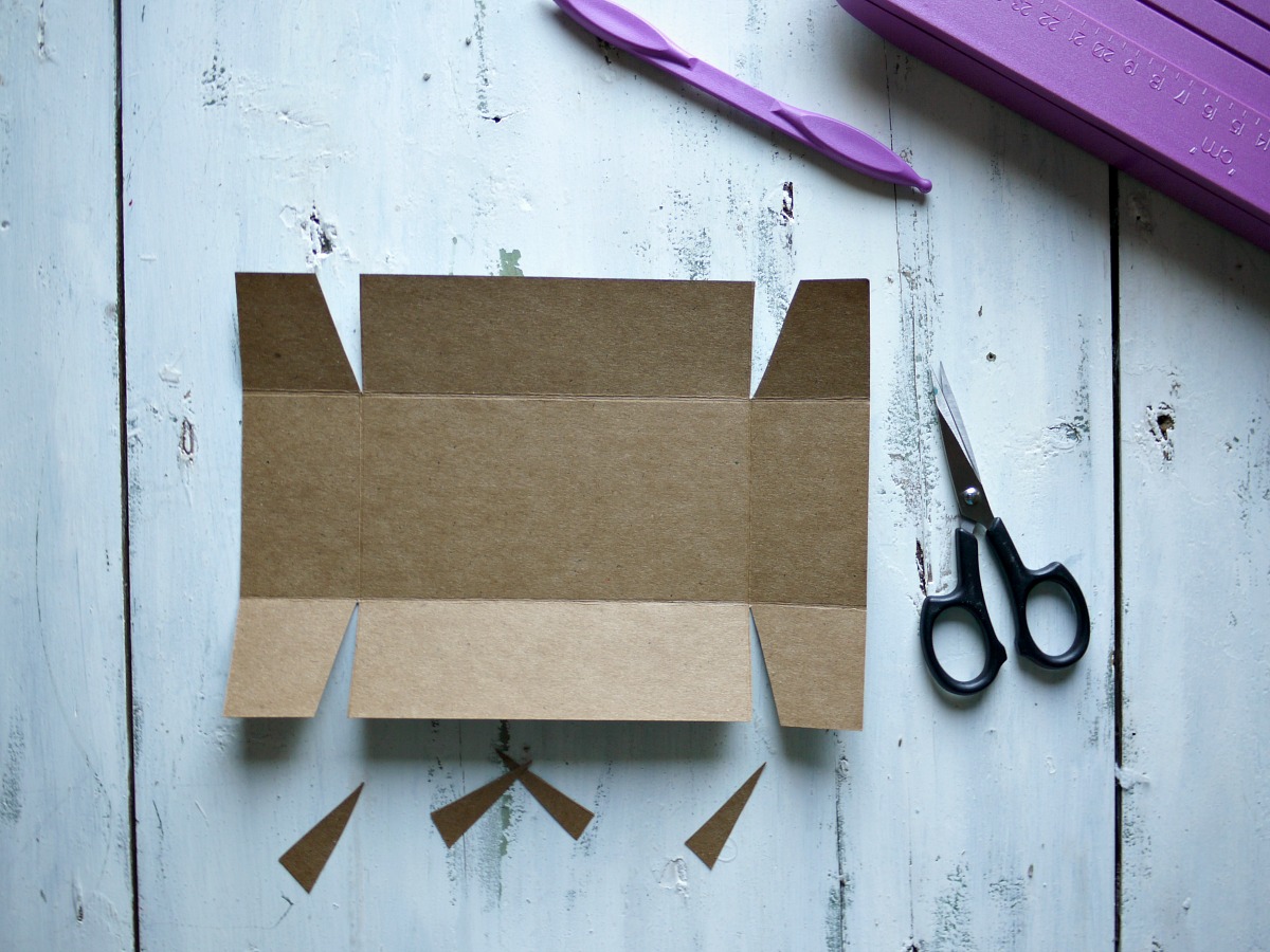 Ko smo naredili prepogibe, jih zapognemo in odrežemo trikotnike za zavihke.