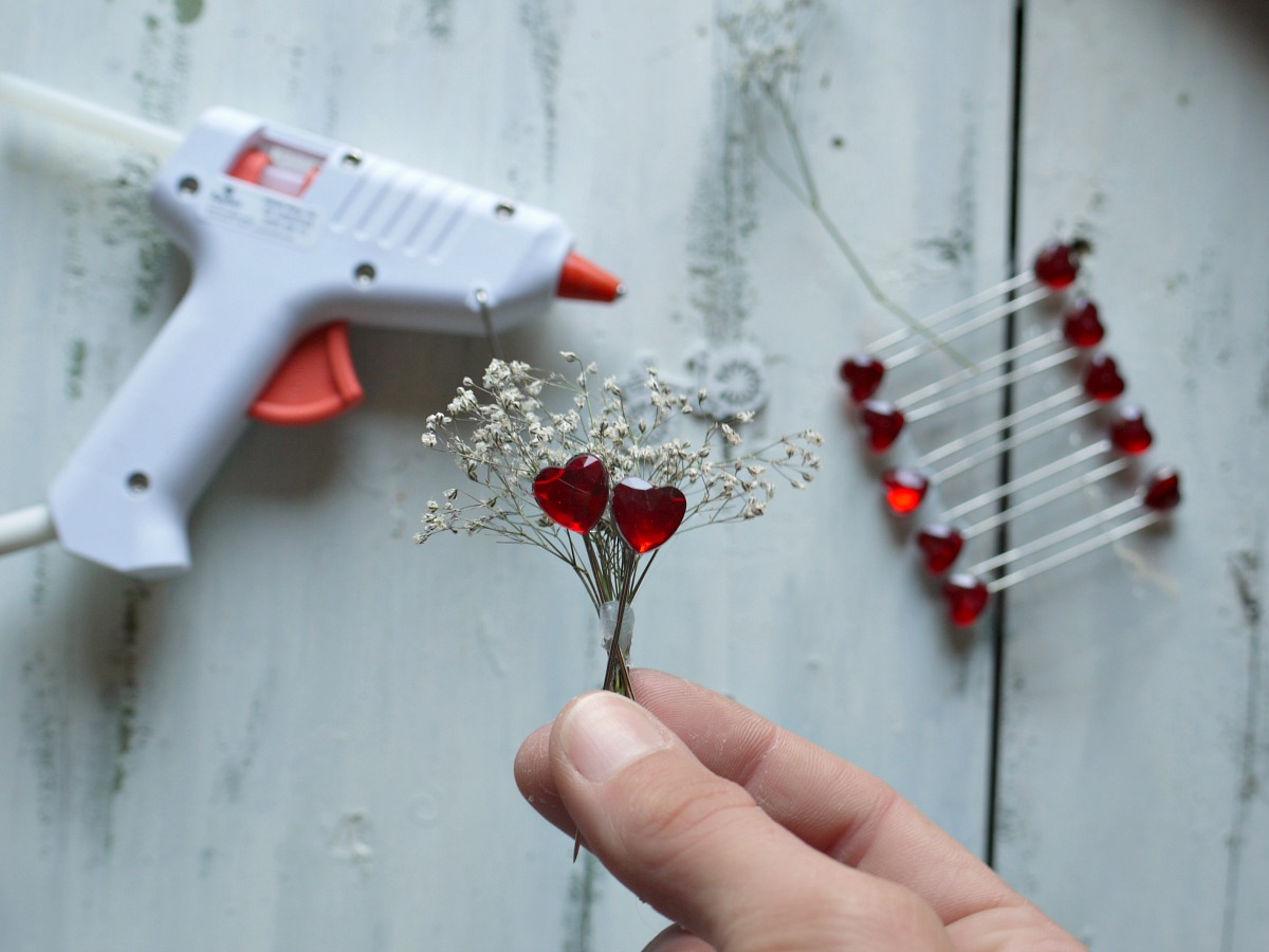 Za dekoracijo smo naredili mini šopek. Najlažje je, če za lepljenje uporabimo lepilno pištolo.