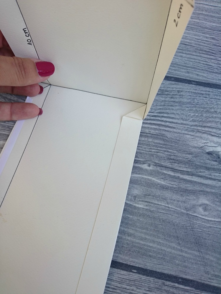 Robove zapognemo proti notranjosti in jih zalepimo. To ponovimo na vseh štirih stranicah.