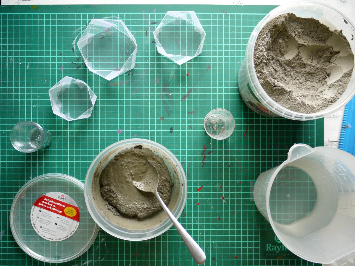 Cement zmešamo z vodo v razmerju 10:1 (npr. 100 g cementa, 10 g vode).