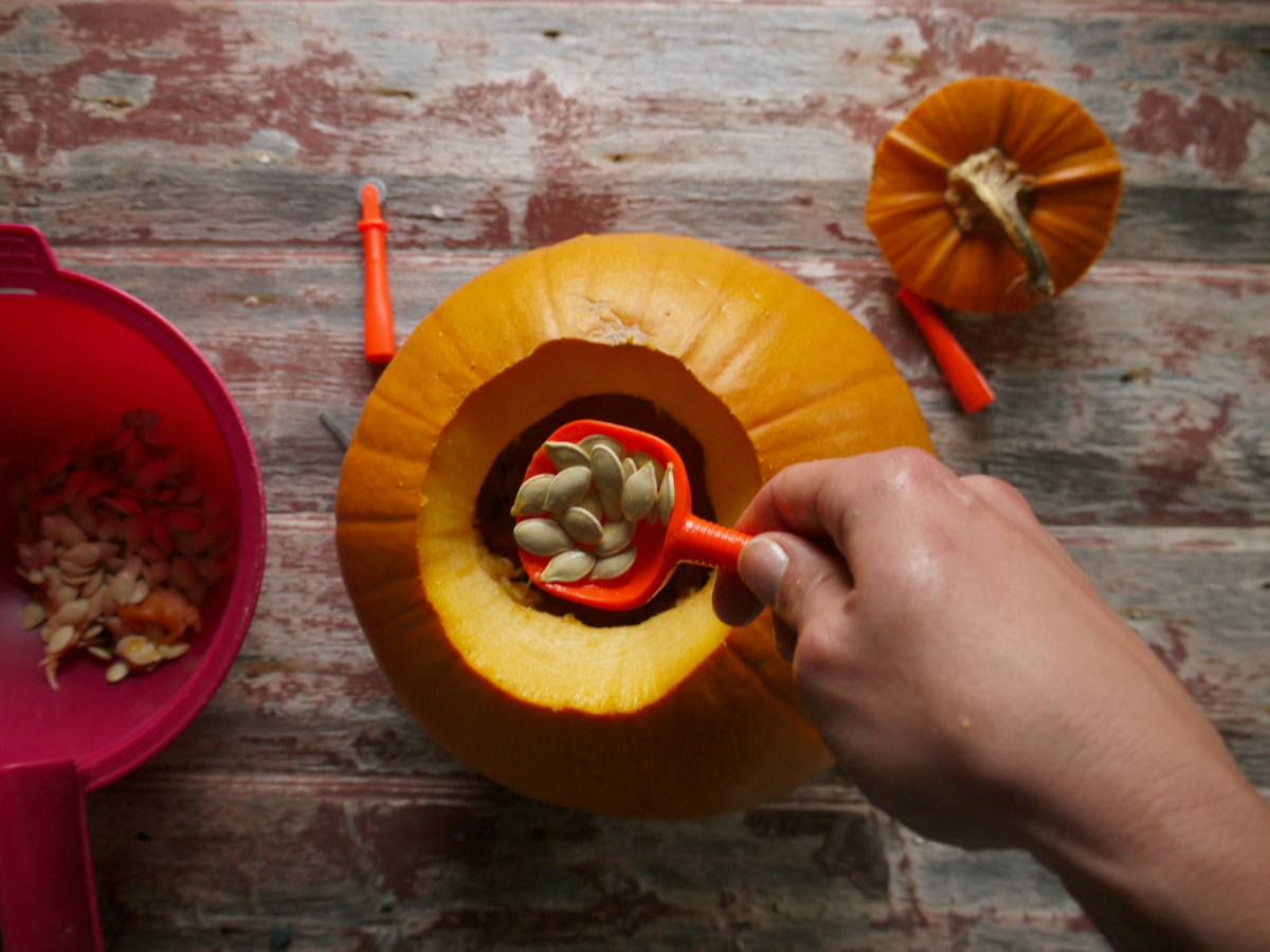 Notranjost buče nato očistimo z žlico.