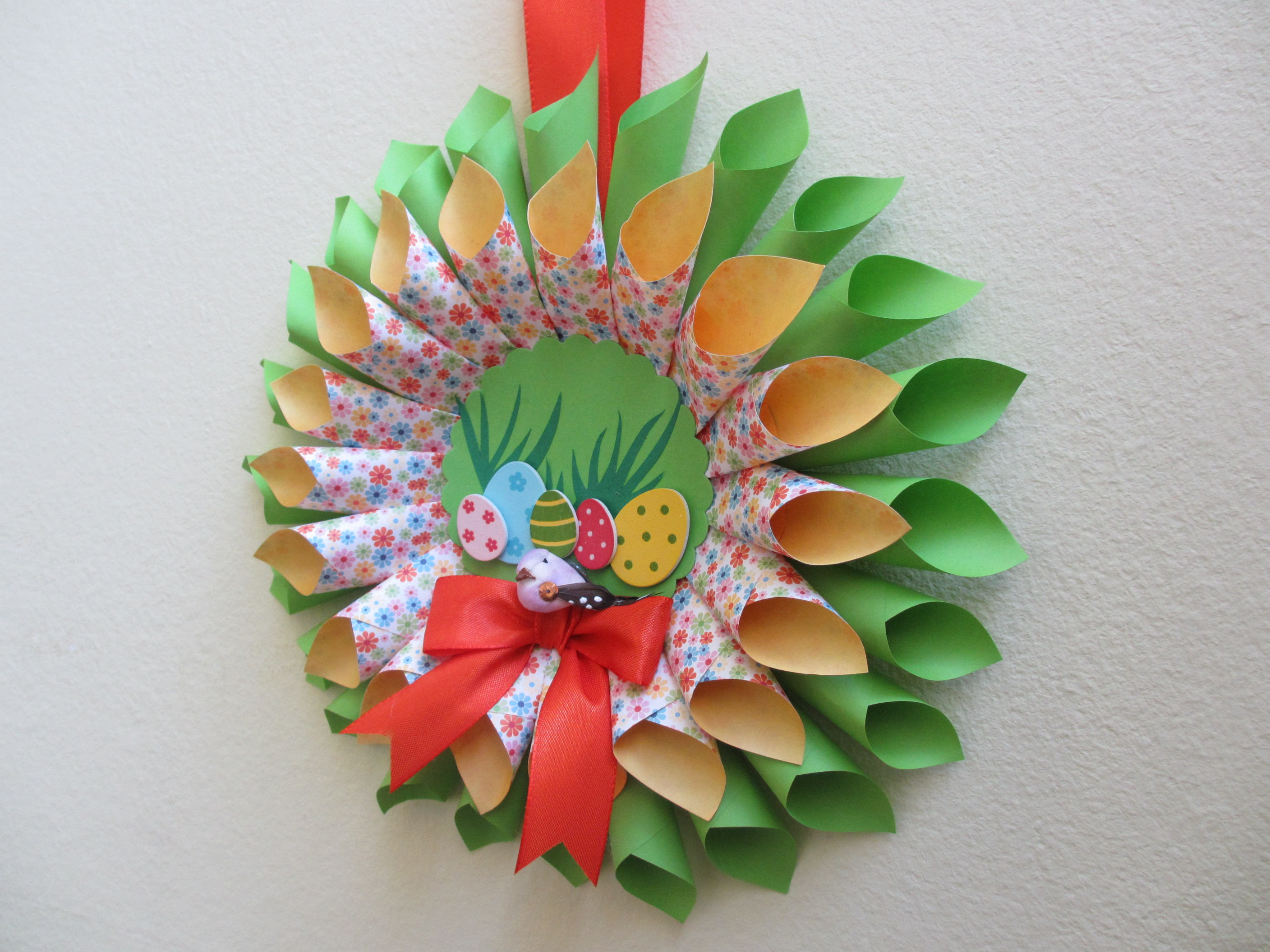 Za izdelavo venčka na sliki smo uporabili origami papirje velikosti 15×15 cm, ki smo jih razrezali na štiri dele.
