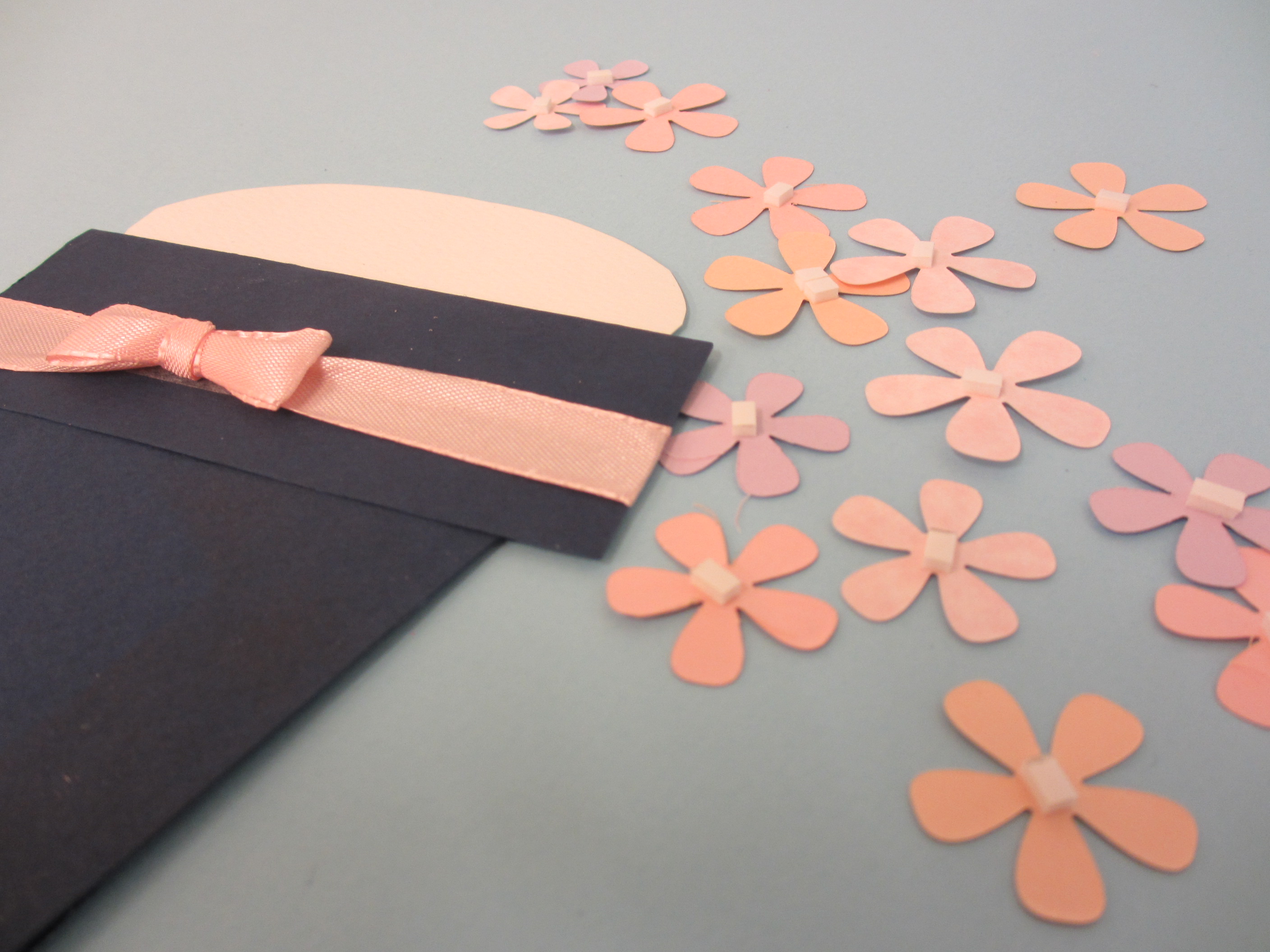 Iniziamo incollando i fiori. Usiamo i cuscinetti adesivi 3D.