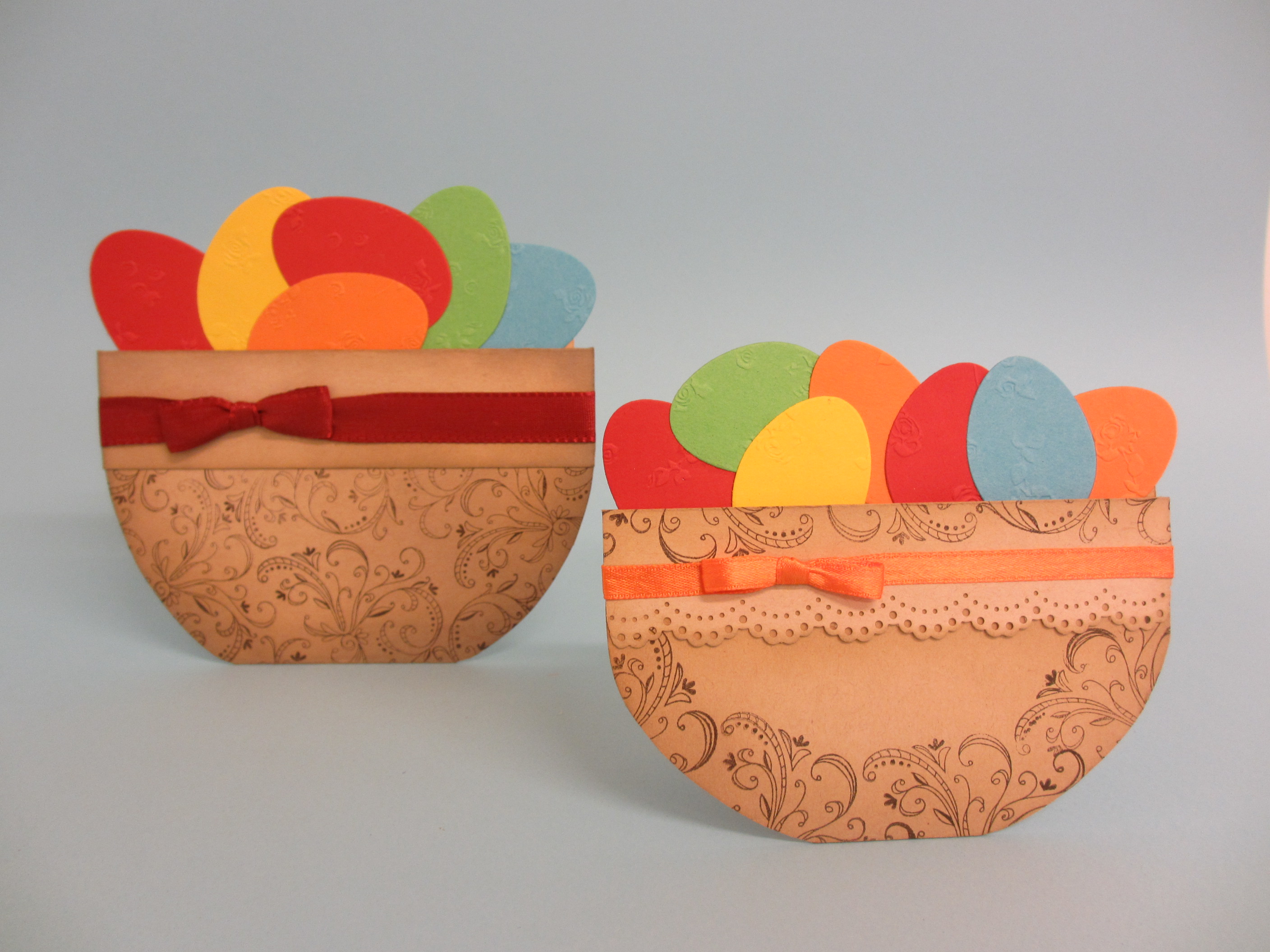 Allo stesso modo possiamo fare un cestino di Pasqua. La forma del vaso è adattata alla forma arrotondata del cestino, e invece dei fiori incolliamo le uova colorate.