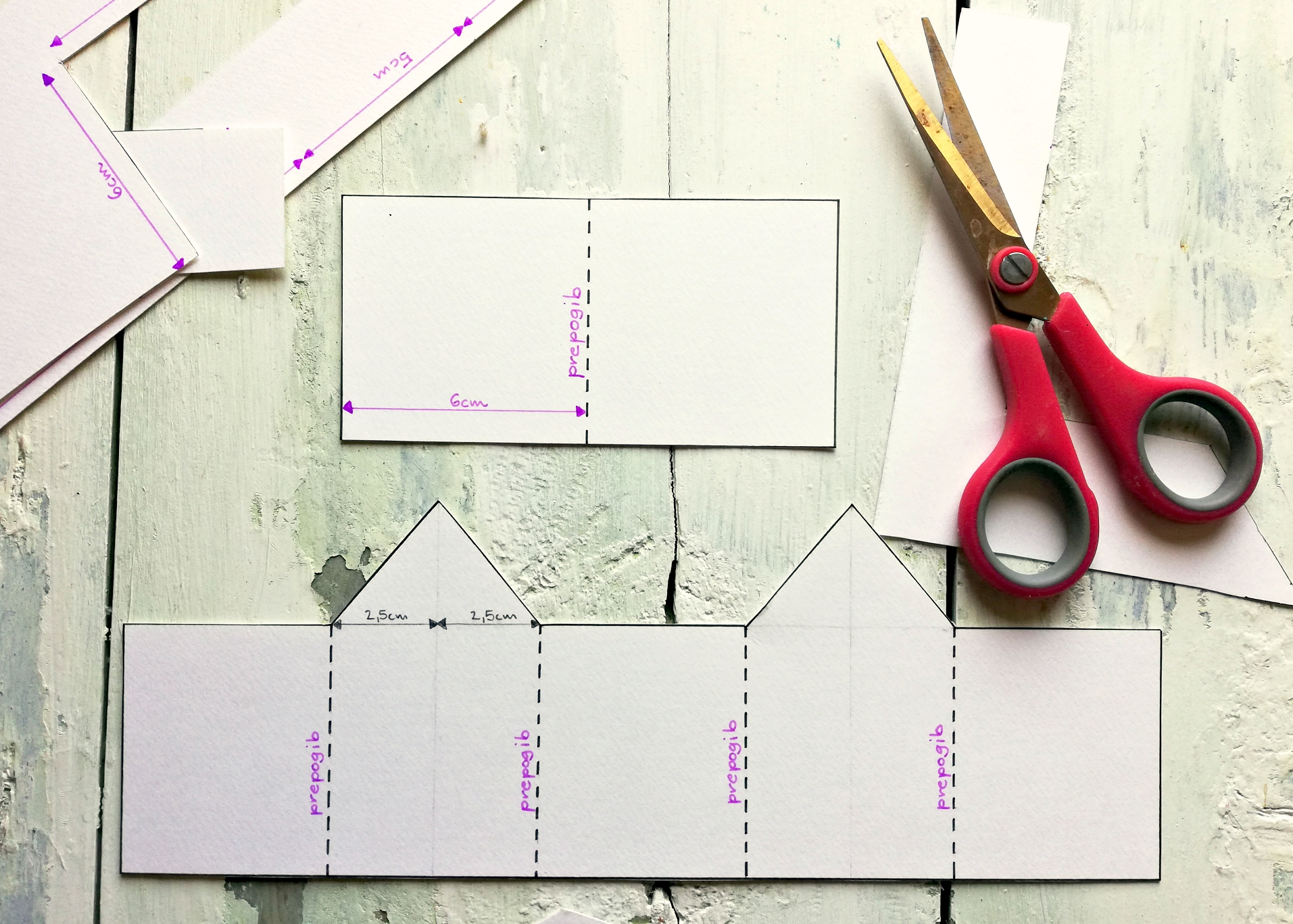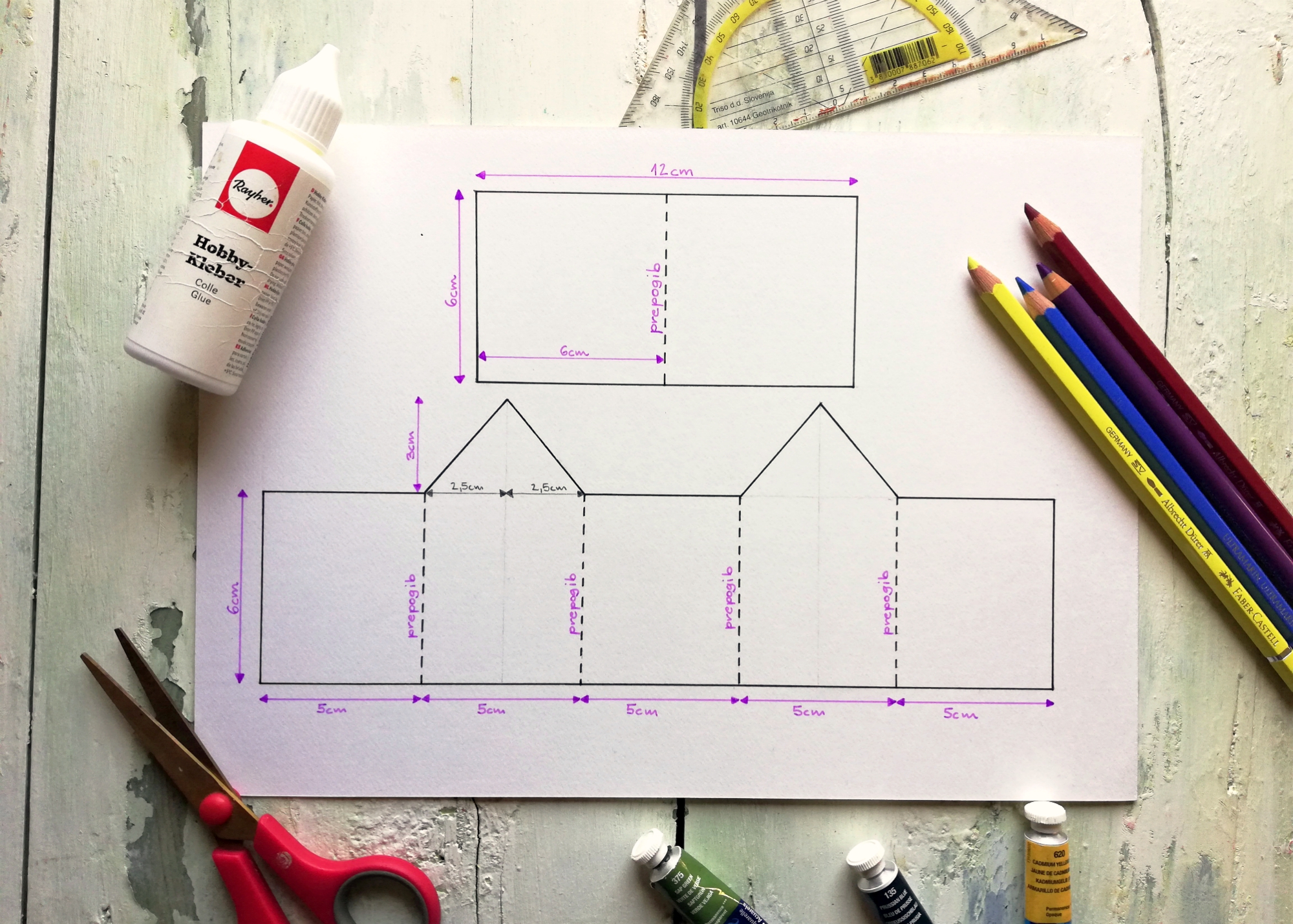 1. Na prvi fotografiji najdete načrt z merami za izris osnove za hišico.