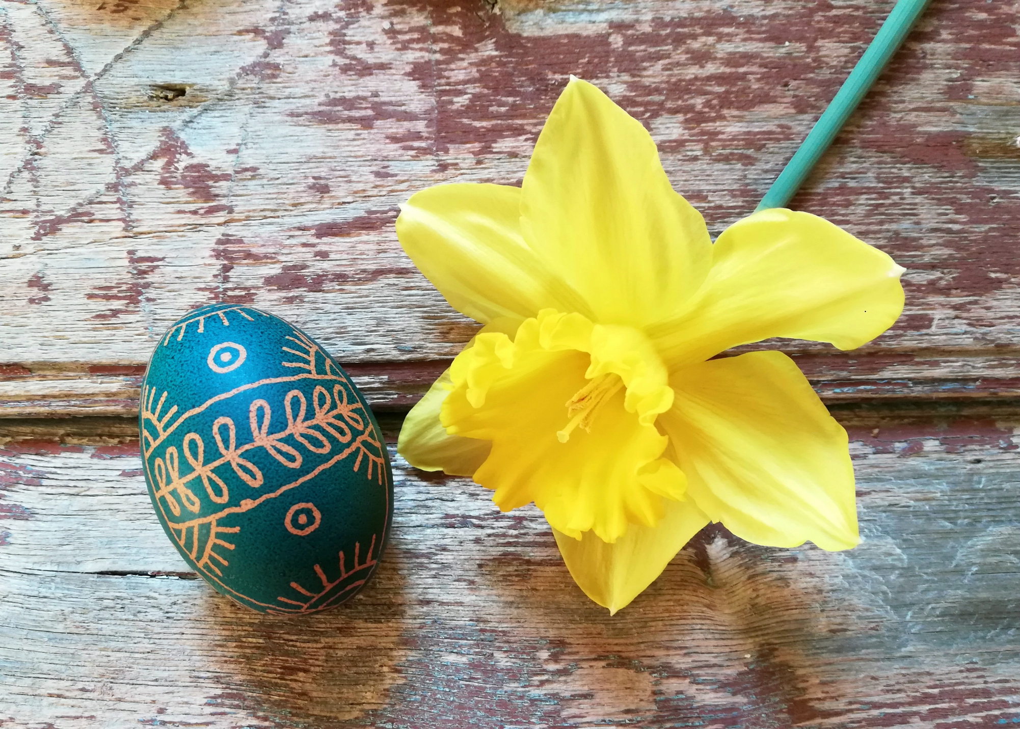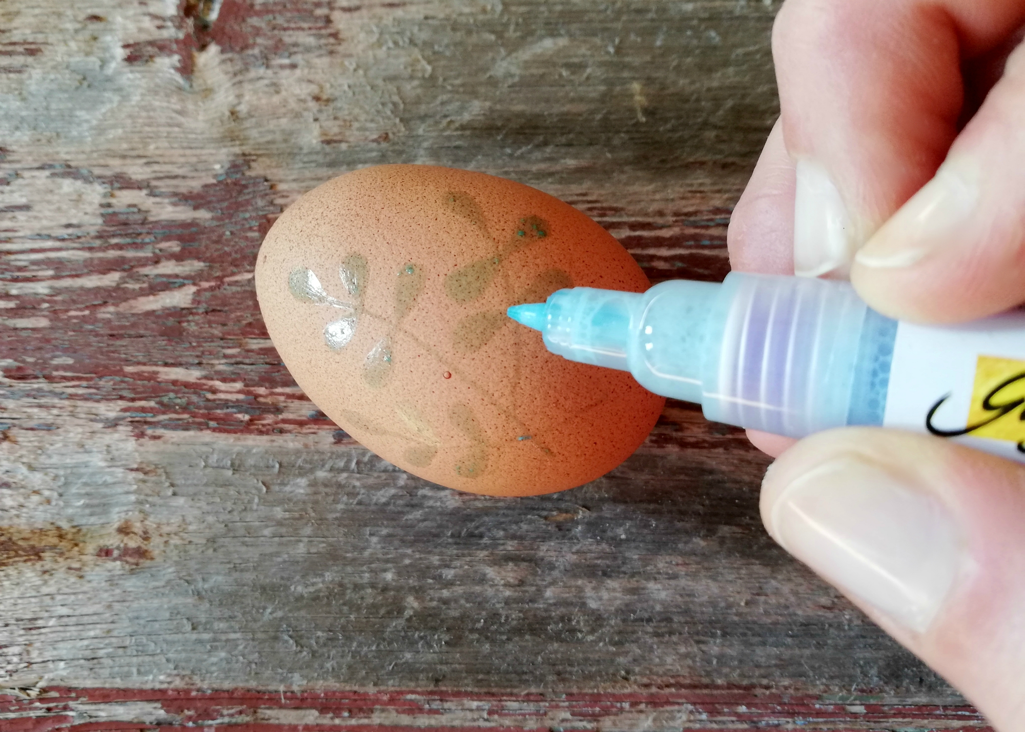 2. S flomastrom na trdo kuhano jajce narišemo poljuben vzorec. Počakamo, da se vzorec dobro posuši, na površini se ustvari prozoren zaščitni film.