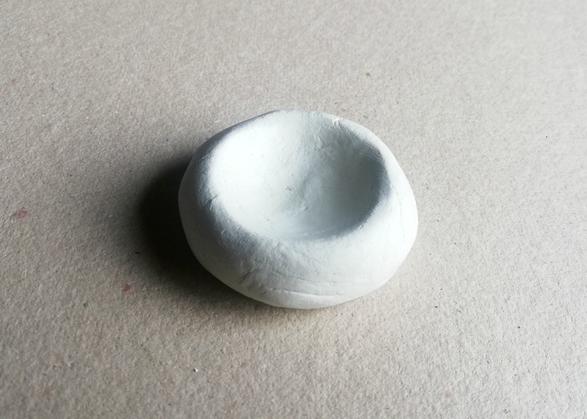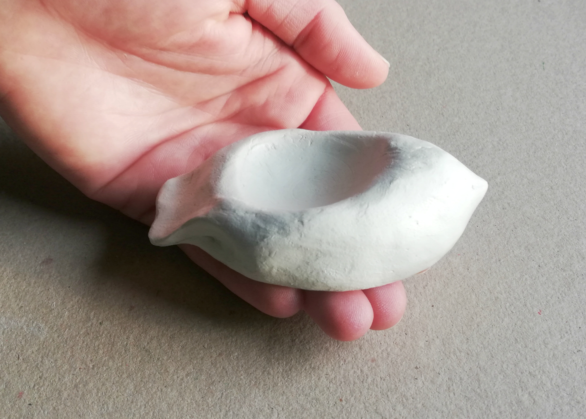 Med obdelavo si v posodici z vodo po potrebi navlažimo prste, da zgladimo morebitne razpoke in prstne odtise. Ko je izdelek suh, ga lahko zbrusimo s finim brusnim papirjem.