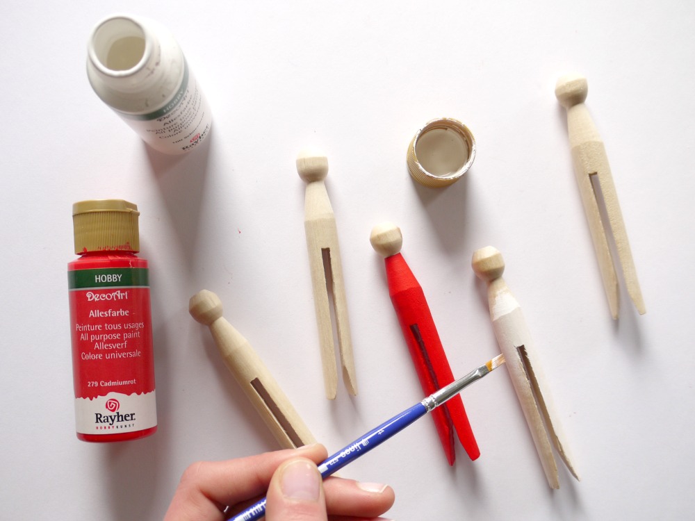 Najprej ščipalke pobarvamo z akrilno barvo.