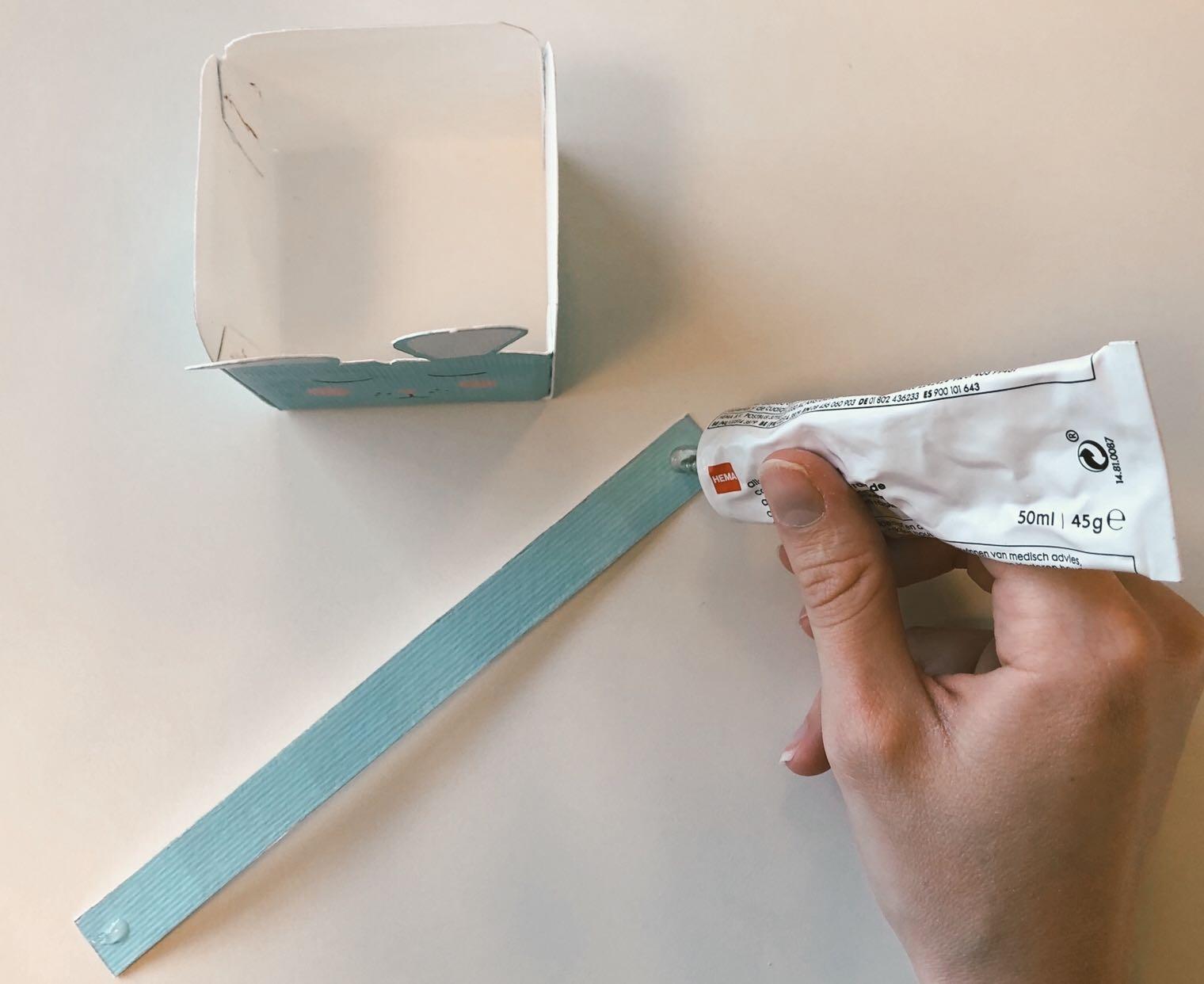 Skoraj smo končali. Potrebno je zložiti košarico. Priporočamo, da uporabite lepilo, ki se hitro suši.
