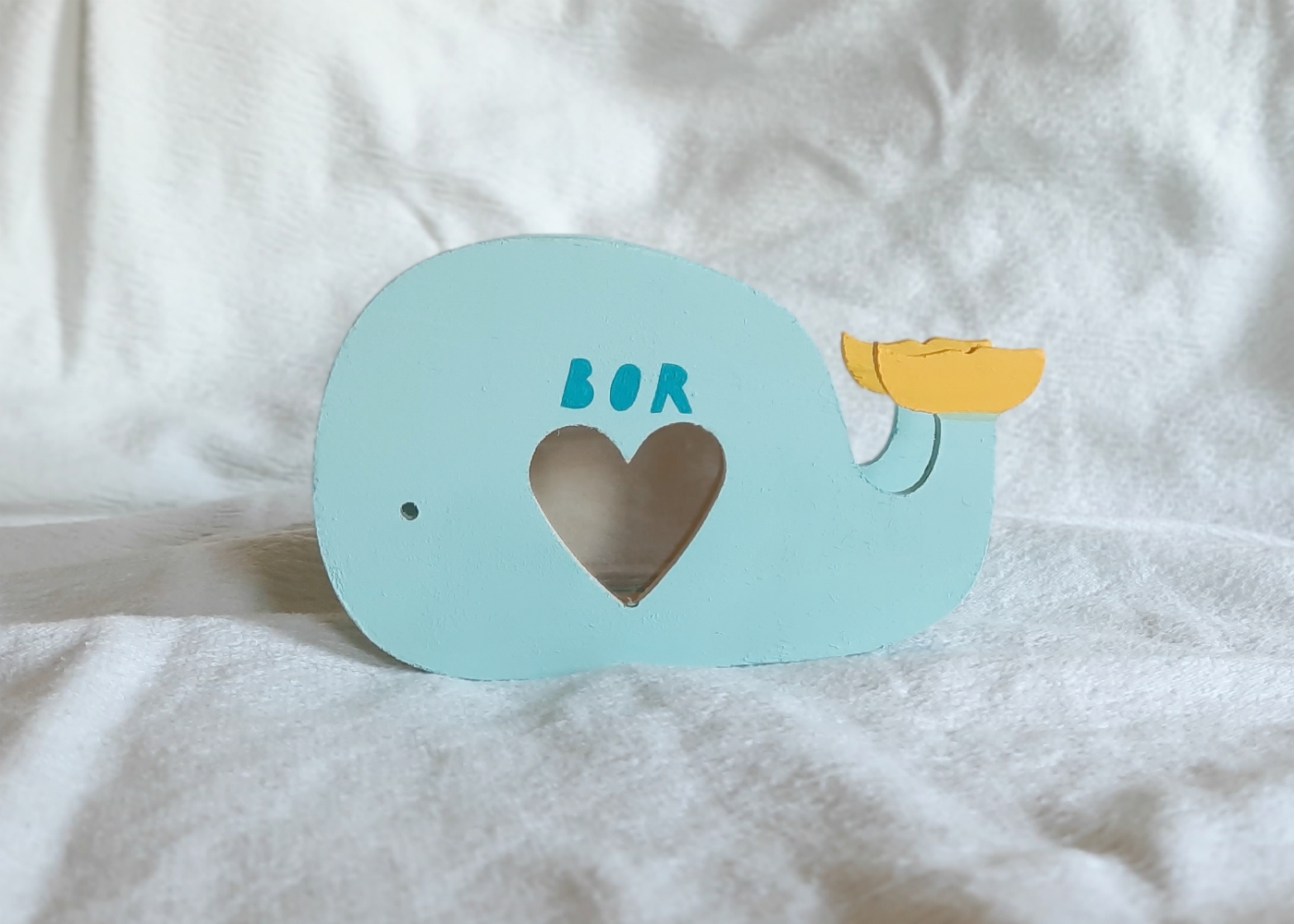 Potrebujemo: - hranilnik, - akrilne barve, - akrilni lak, - čopič. Hranilnik pobarvamo z akrilno barvo. Ko se posuši, ga okrasimo po svojih željah. Mi smo se odločili, da bo na eni strani ime obdarovanca, na drugi strani pa pozitiven napis. Po želji nato hranilnik zaščitimo z akrilnim lakom.