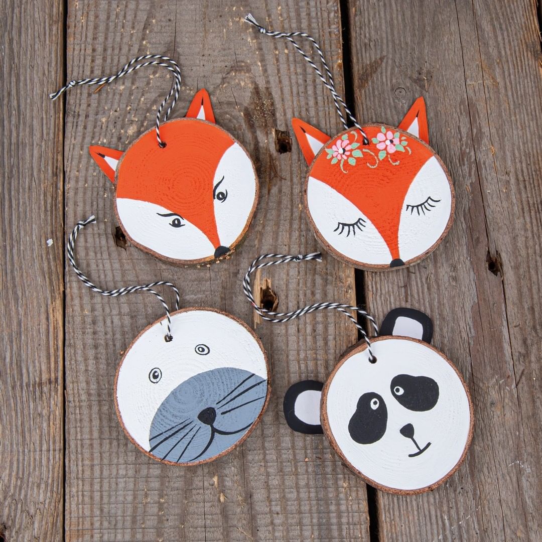 Rob lesenega diska pustimo nepobarvan, da bo tako še bolj povdaril ljubke obrazke naših živalic.