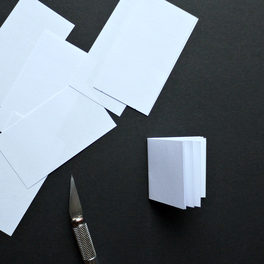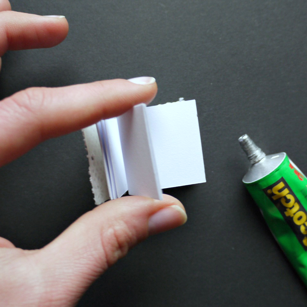 Tagliamo dei rettangoli dalla carta (da 3,5 x 6 cm) e li pieghiamo a metà.