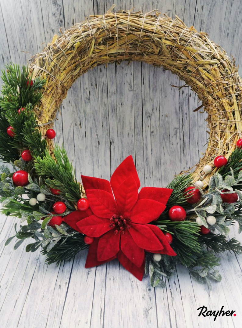 Koral 1Za izdelavo venčka uporabimo slamnato osnovo premera 25cm.