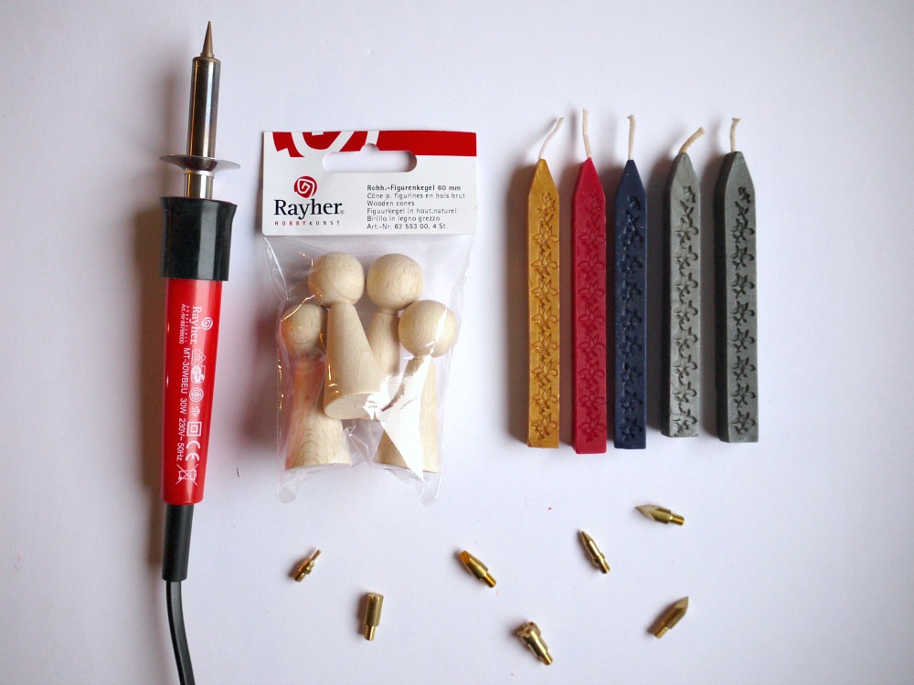 Potrebujete pirograf, lesen stožec oz. figurico, pečatni vosek, svinčnik in malo rastlinskega olja.