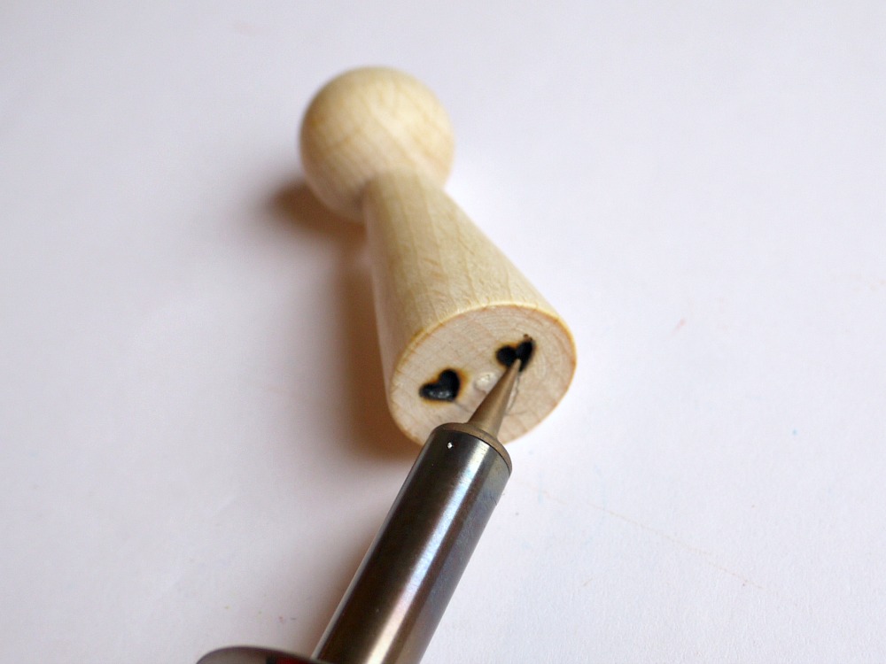 Nato s pirografom vžgete motiv. Če z njim delate prvič je najbolje, da si izberete nekaj preprostega.