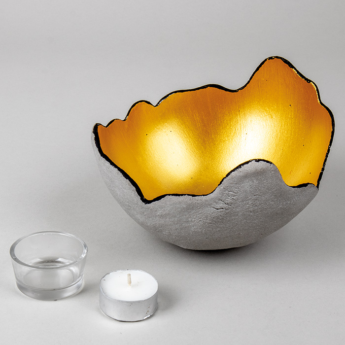 Vašo elegantno betonsko skledo dopolnite z držalom za čajne lučke in čajno lučko.