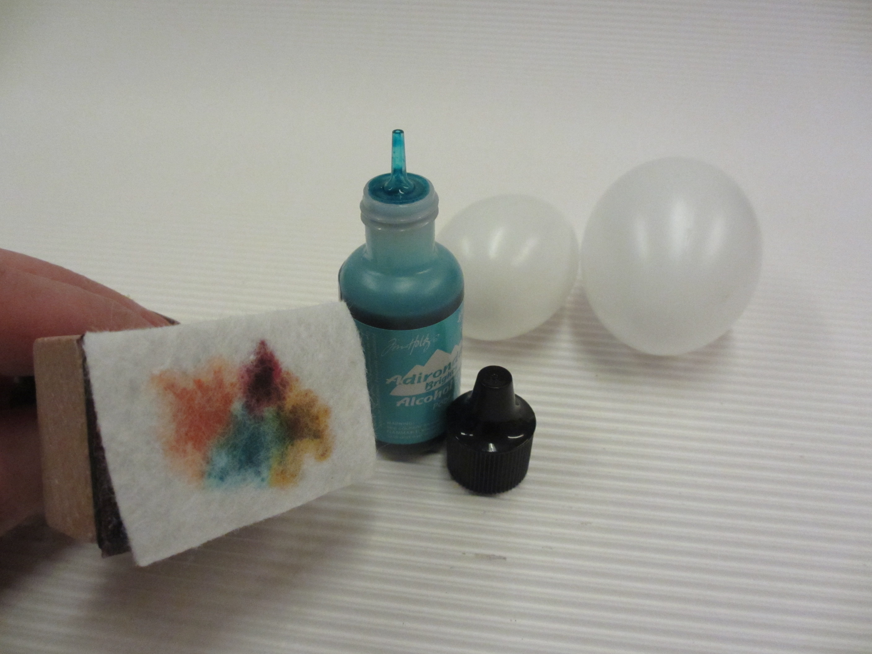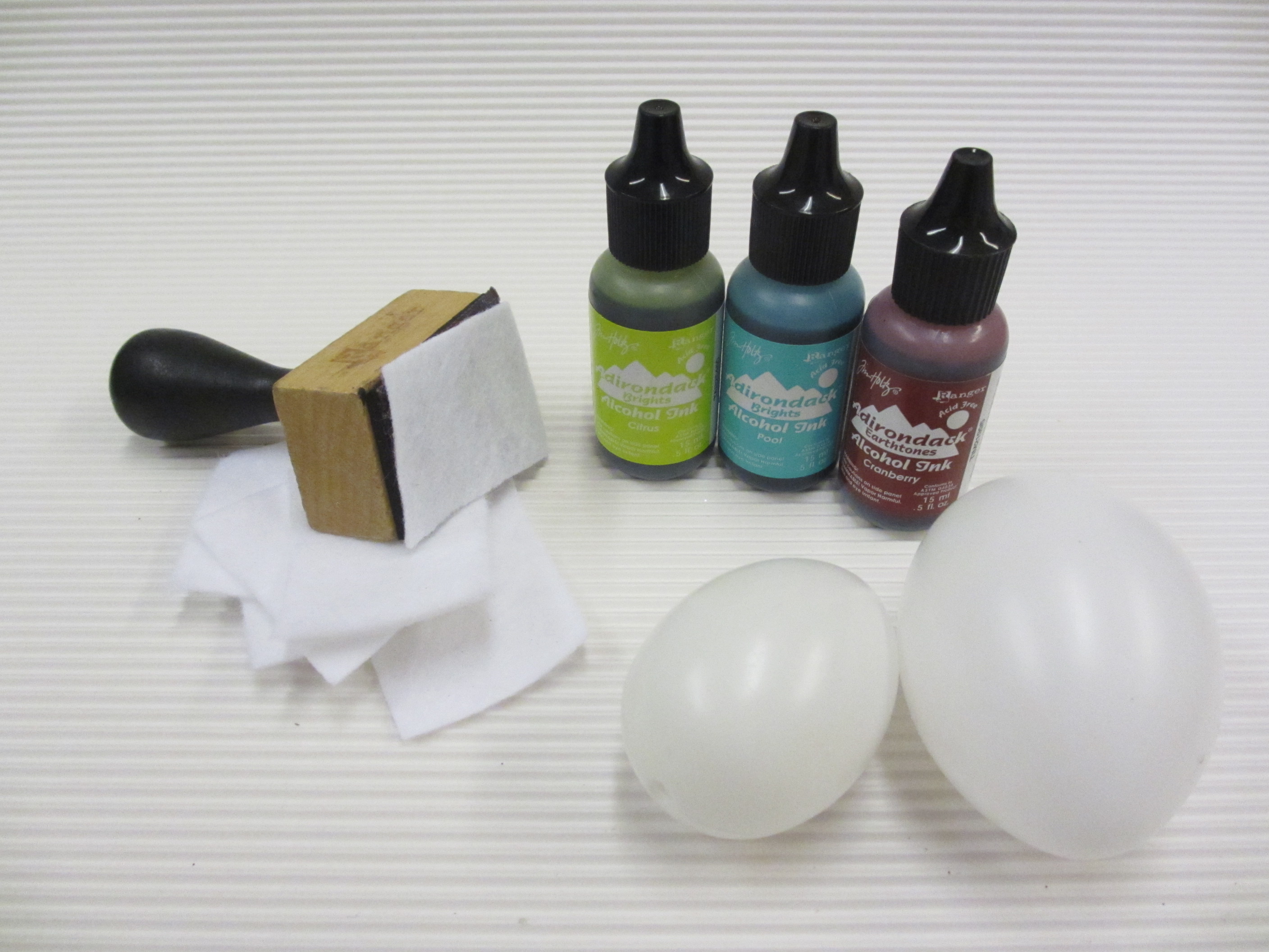 Za izdelavo potrebujemo: vsaj tri barve alkoholnih tušev, plastična jajca, blazinice za nanosNa blazinico nakapljamo tuše....