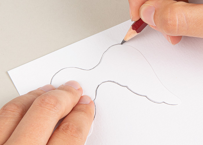 Krila iz predloge trikrat prenesite na bel papir in jih izrežite.