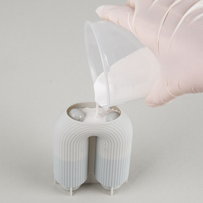 Po približno 60 minutah sušenja vmešajte beli keramični prah Raysin. Z belo mešanico Raysin napolnite kalup.