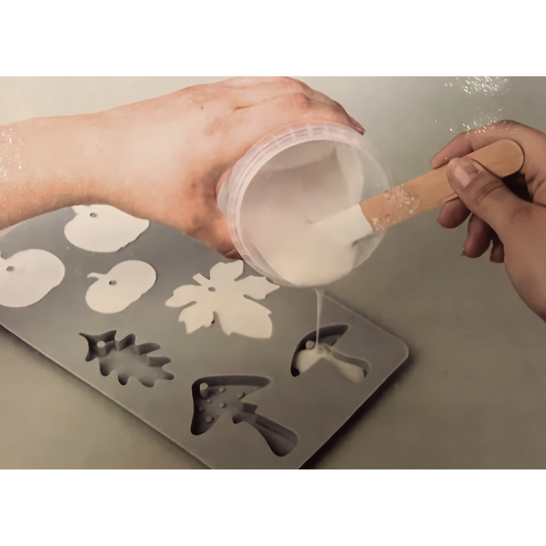 2. Posiziona lo stampo in silicone su una superficie piana. Versa con cautela la miscela di Raysin nello stampo, assicurandoti che il composto si distribuisca uniformemente e che non ci siano bolle d'aria. Aspetta che il composto si indurisca (di solito ci vogliono alcune ore, a seconda dello spessore delle colate e della temperatura ambiente).