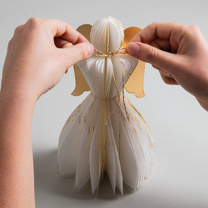 Raztegni angela in okoli pasu in vratu zaveži zlato vrvico.