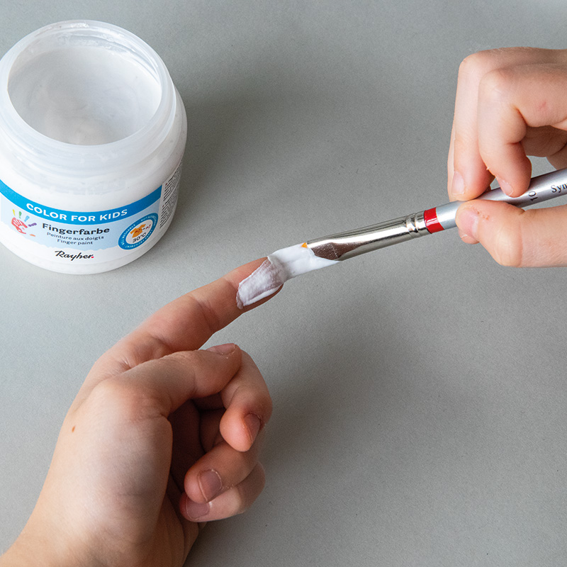 1. korakS čopičem premažite kazalec z belo barvo za prste.