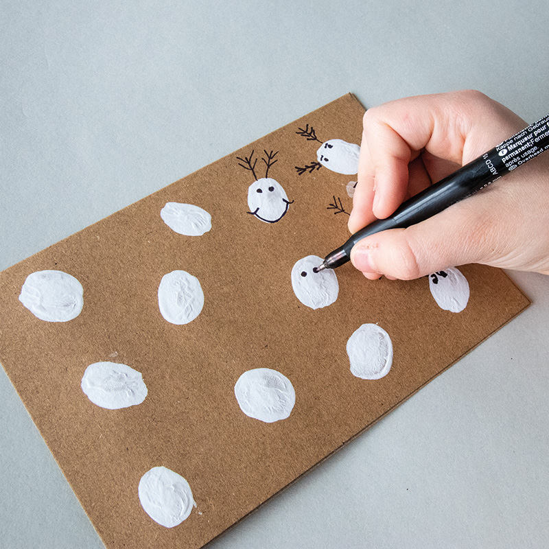 S prstom odtisnite barvo na karton. Ta postopek ponovite po celotni površini kartona. Pustite, da se barva temeljito posuši.