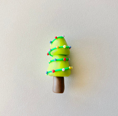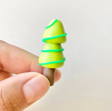 Create il tronco con la pasta marrone. Modellate una pallina in un cilindro spesso e tagliate le estremità. Per un supporto extra, tagliate un pezzo di spillo metallico o utilizzate uno stuzzicadenti, inserendolo nell'albero.