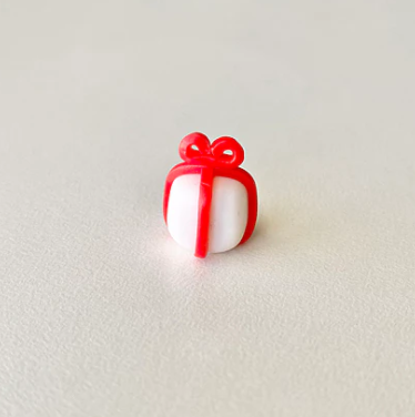 Con la pasta rossa, tagliate un'altra striscia e piegate le estremità verso il centro per creare un fiocco. Posizionate il fiocco sopra il regalo.