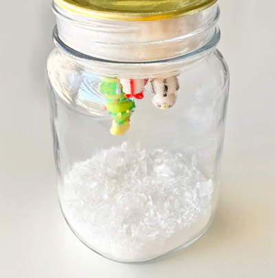 Avvitate il coperchio decorato sul barattolo, capovolgetelo e ammirate la vostra nuova palla di neve!