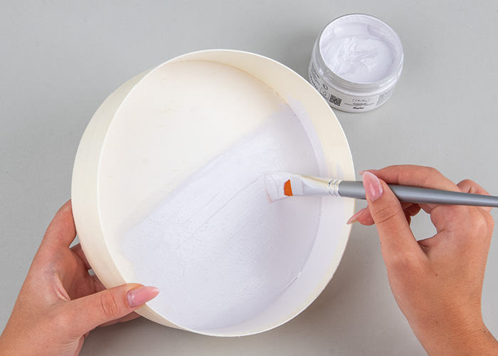 1. korakNotranjost lesene škatle pobarvajte z belo kredasto barvo in pustite, da se posuši.