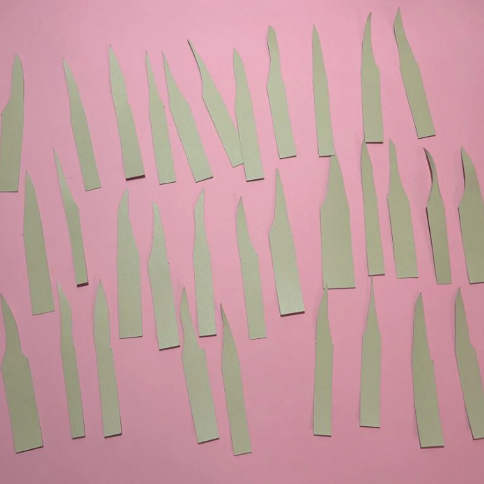 Izrežite po teh črtah, da dobite dve polovici kartona, nato pa posamezna rezila trave ločite z dodatnimi rezi.