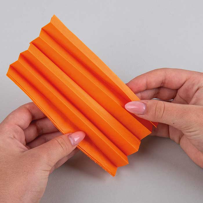 Korak 1Za vsak cvet in vsako barvo potrebuješ 4 plasti svilnatega papirja velikosti 15 × 15 cm. Liste papirja položi enega na drugega in jih na eni strani zloži v harmoniko (vsaka guba naj bo široka 1,5 cm).