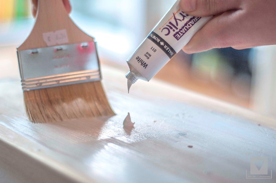 Predale, ki jih bomo polepili z decoupage papirjem, najprej prebarvamo z belo akrilno barvo.